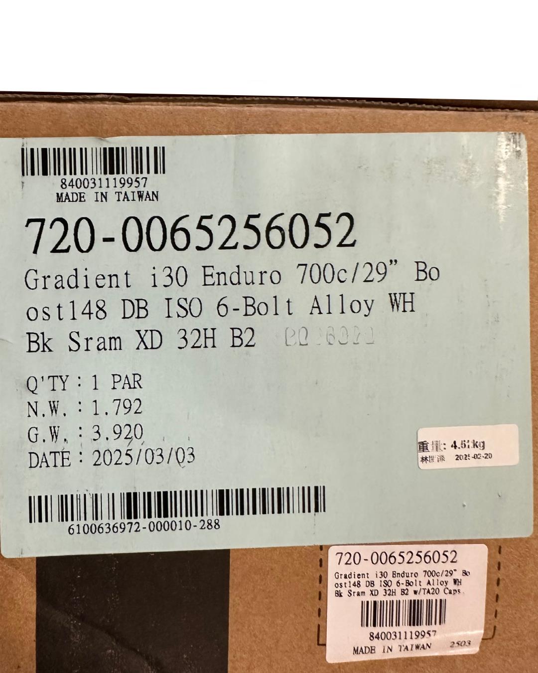 The Gradient i30 Enduro wheels are built for aggressive trail and enduro riding, combining strength, control, and modern Boost spacing. With a wide 30mm internal rim, tubeless-ready design, and asymmetrical profile for optimized spoke tension, they deliver confident handling on technical terrain. Featuring a durable alloy construction, 6-bolt disc compatibility, and a SRAM XD freehub, this wheelset is ready for demanding all-mountain adventures.